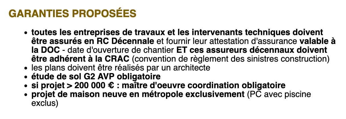 Il est conseillé de trouver un assureur solide financièrement afin d’être protégé pour une durée de 10 ans de la garantie.